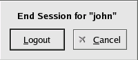 There are two ways to log out of your KDE session. From the Main Menu, select Logout User, where User is your account username. To log out from the desktop, right-click on the desktop and, from the menu, select Logout User where User is your account username. In either case click Logout and your session ends.