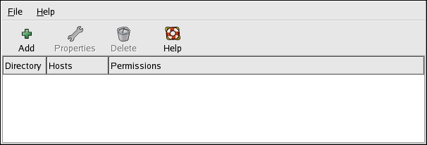 The NFS Server Configuration Tool reads and writes directly to the /etc/exports configuration file. Thus, the file can be modified manually after using the tool, and the tool can be used after modifying the file manually (provided the file was modified with correct syntax).